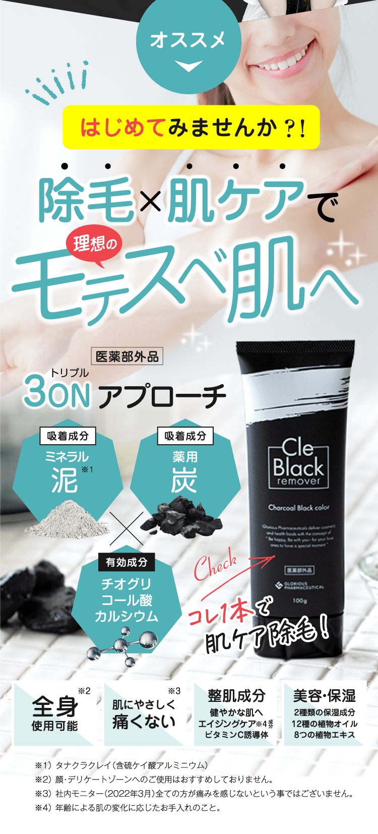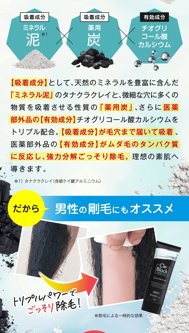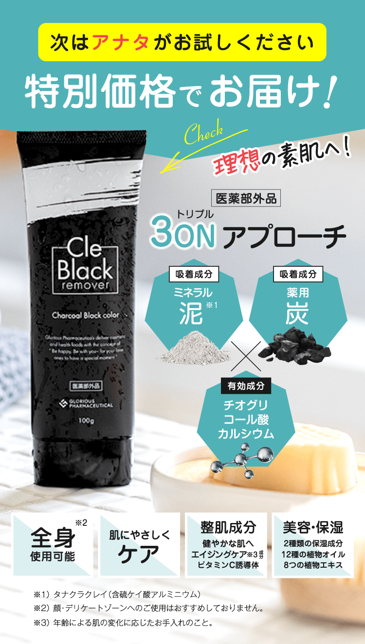 泥(クレイ)と薬用炭でごっそり除毛!医薬部外品の「クレブラックリムーバー」を試してみたいですか?※除毛による一時的な効果